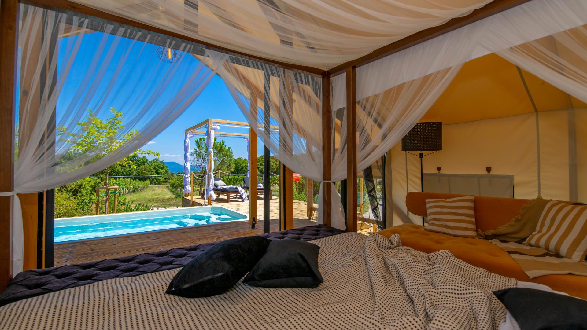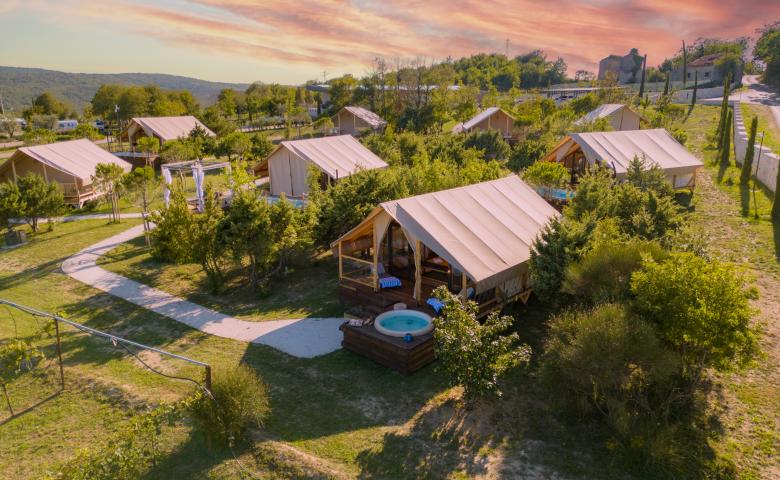 Just a 10-minute walk away from the old town of Labin, the Floria Glamping Garden family campsite is the story of the Istrian climate. Guests can choose from 7 pitches for campervans, each with an area of 100 m2, with all the necessary modern infrastructure for a comfortable stay in the midst of nature with all elements of autochthonous Istria, as well as 8 luxurious tents named after the plants planted at the entrance to the tents, prividing its guests with maximum pleasure, guaranteeing privacy and relaxation in nature.