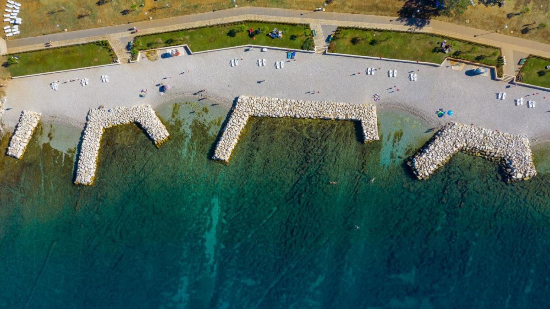 Hotel Laguna Materada beach is a rocky hotel beach, but it also serves as an urban beach for the local population. The beach is situated on a small peninsula characterized by elevated reefs with smaller gravel sections The beach has lifeguards, lifesaving equipment, first aid, infirmary, facilities for receiving recyclable waste, catering establishment The beach guards are present from 8 a.m. to 5 p.m. (May 15-September 30). There are no environmentally sensitive areas in proximity to the beach, and the beach can be approached by paved walkways. The bulletin board is available on the beach (contains info on conditions on the beach, results of sampling, the map of sampling points, cultural and protected heritage, etc.), camp reception disseminating all relevant information, eco-activities, signs, gazettes, regulations.