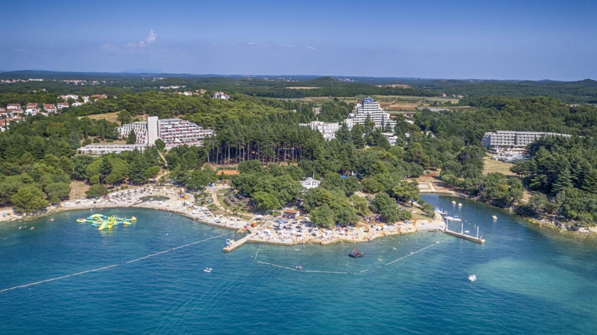 The Brulo beach is a partly rocky, partly built resort beach, situated in the tourist resort Brulo, on the southern edge of the city of Porec. The beach has paved areas for sunbathing. Between the rocky part and the catering facilities, there is a part of beach that is covered with grass. The resort and the beach are surrounded by pine trees, cypress trees and oak woods.