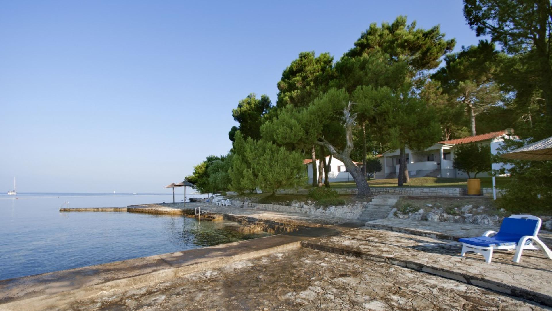 Laguna Galijot Beach is a rocky hotel beach, situated on a small peninsula covered with pine trees. Galijot is a resort beach with lifeguards, with lifesaving equipment, first aid, infirmary, facilities for receiving recyclable waste, ramps and toilet facilities for disabled, catering establishment. The lifeguards are present from 8 AM to 5 PM, starting on May 15 and closing on September 30. There are no environmentally sensitive areas in proximity to the beach, and the beach can be approached by paved walkways. The beach has a bulletin board (info on conditions on the beach, results of sampling, the map of sampling points, cultural and protected heritage, etc.), camp reception disseminating all relevant information, eco-activities, signs, gazettes, regulations.