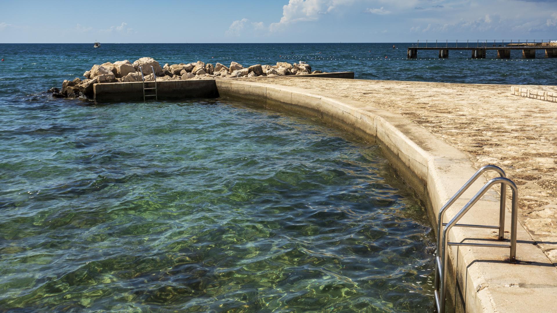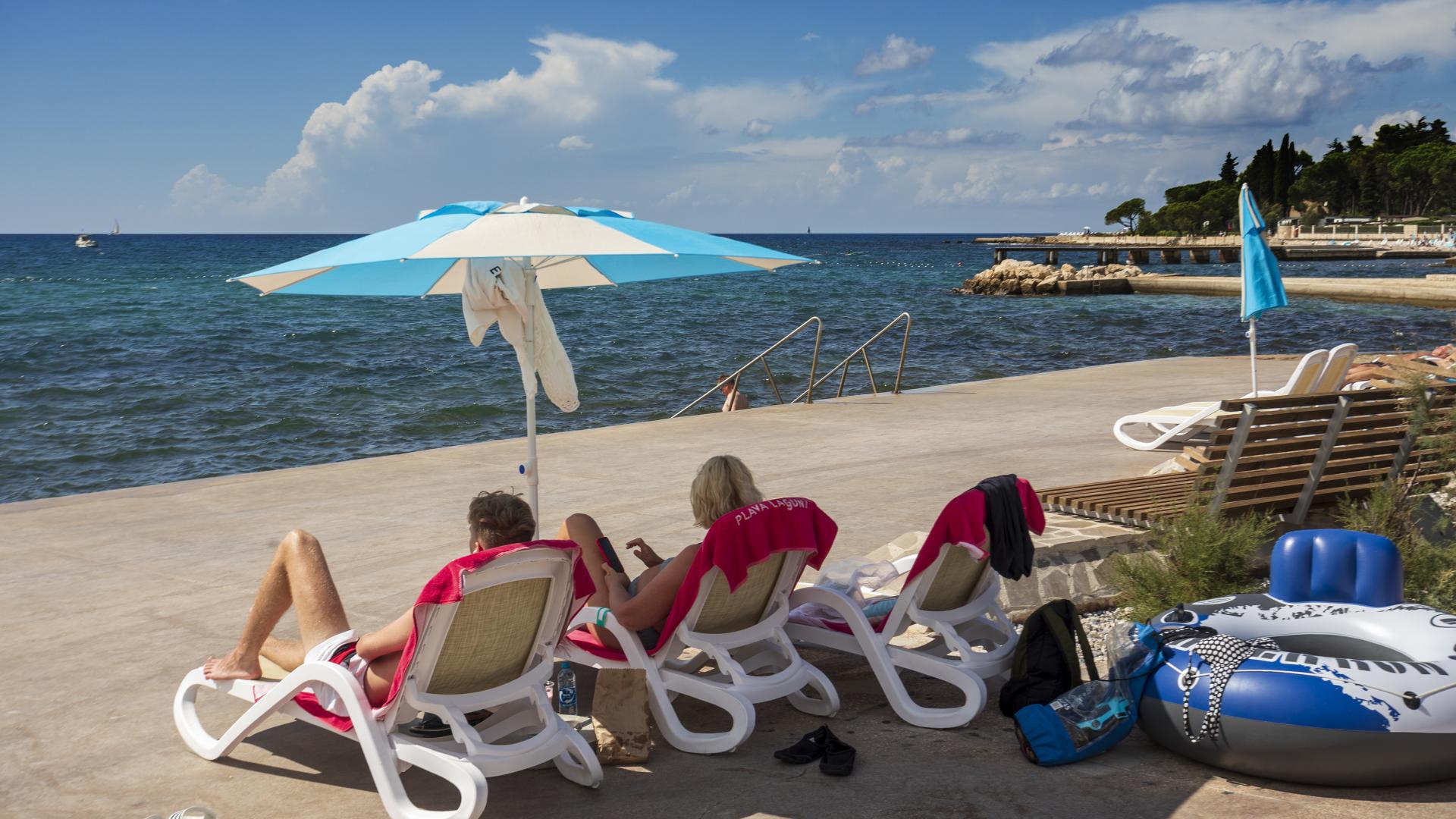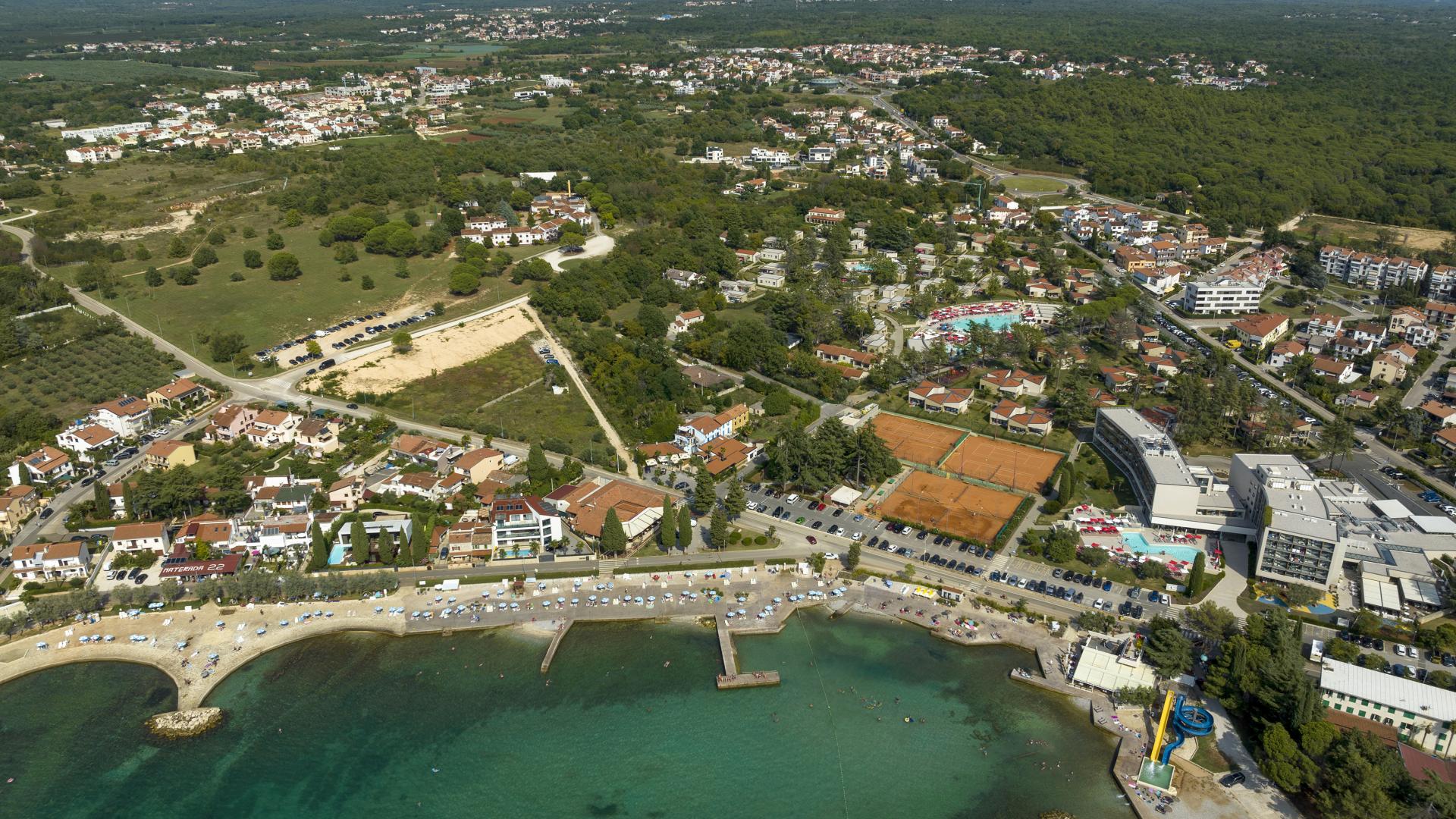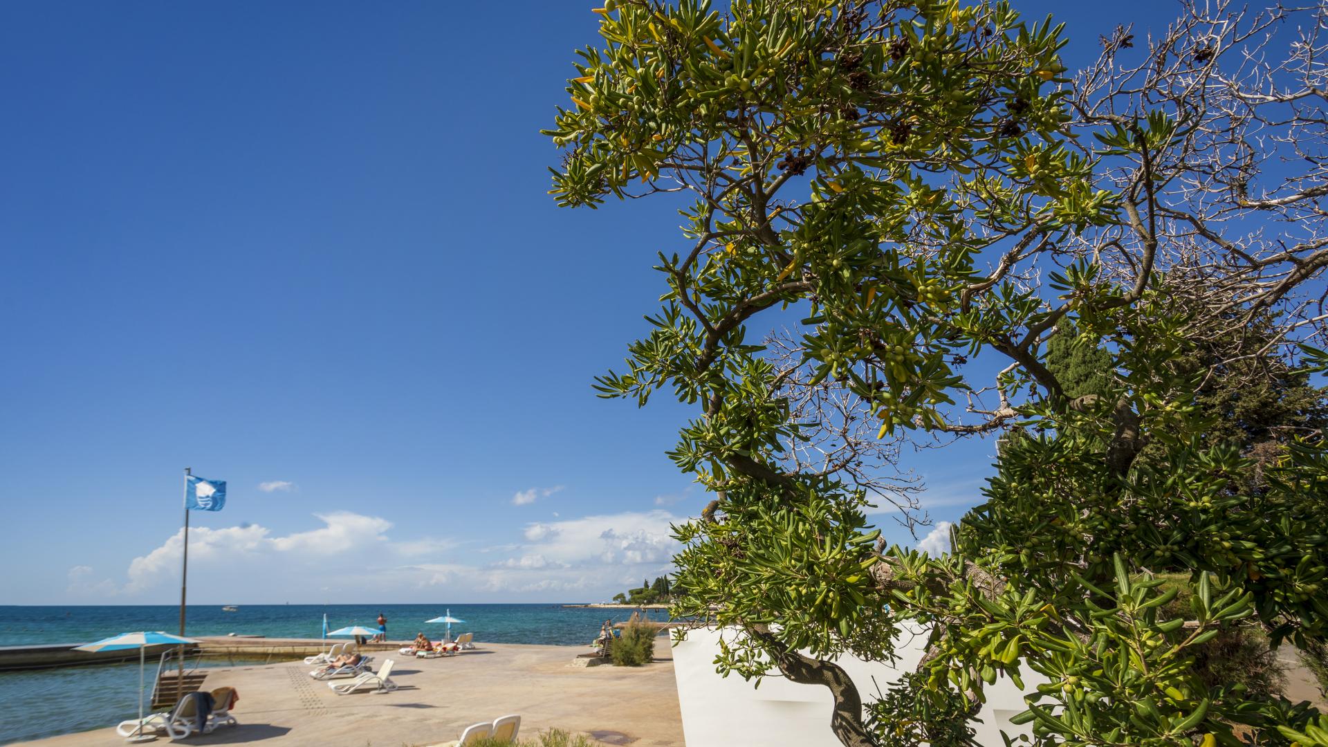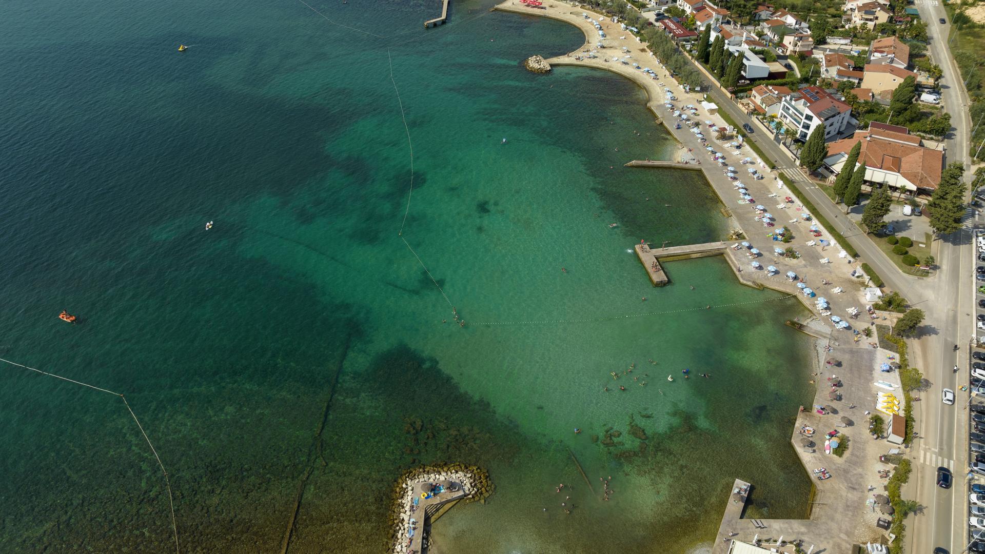 The refreshed beach, located in the northern part of Poreč, can be accessed on foot, by bike or by car. The beach is equipped with the sea access facilities and a sunbathing area by the sea made by pebble depositing and levelling.
