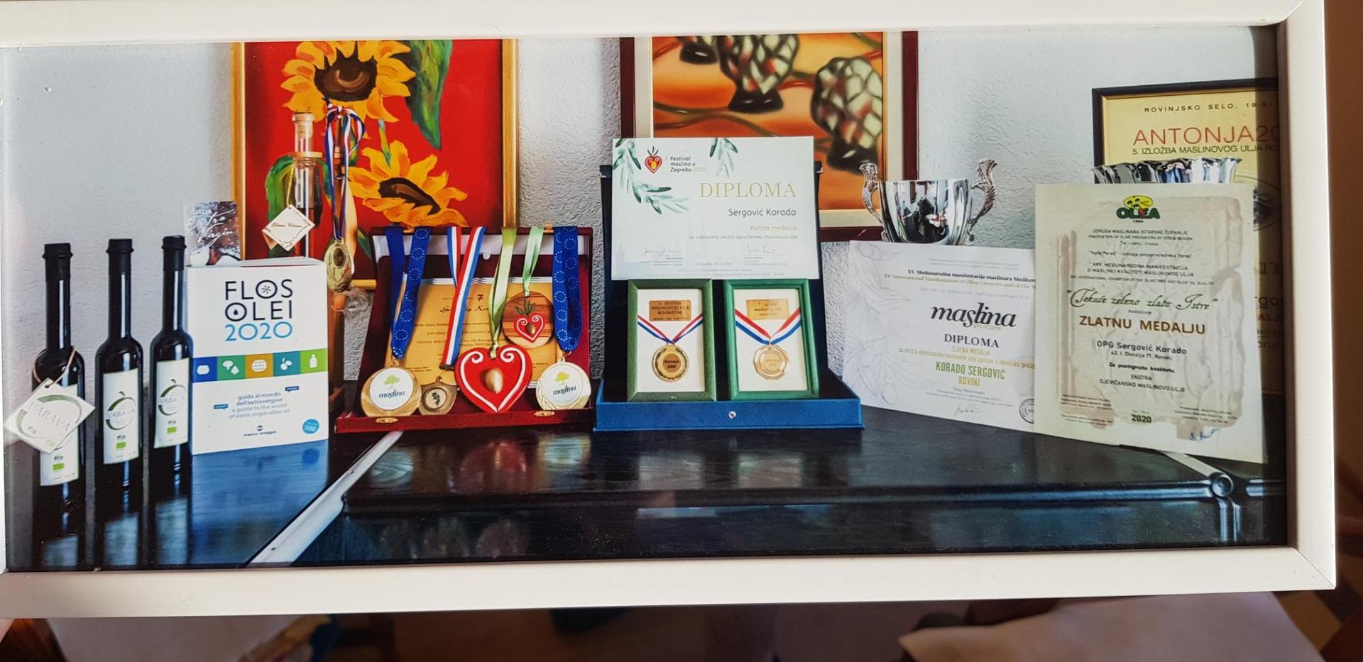 OPG Sergović has organic production of extra virgin olive oil and almonds. They have a total of 2183 olive trees, from 6-year-old to 14-year-old trees. The varieties Buža, Buža puntoža, Biankera – Bjelica, Rožinjol and Žižoller are represented. Of that, Buža and Buža puntoža make up 65 percent of the total olives, and Biancera 17 percent.