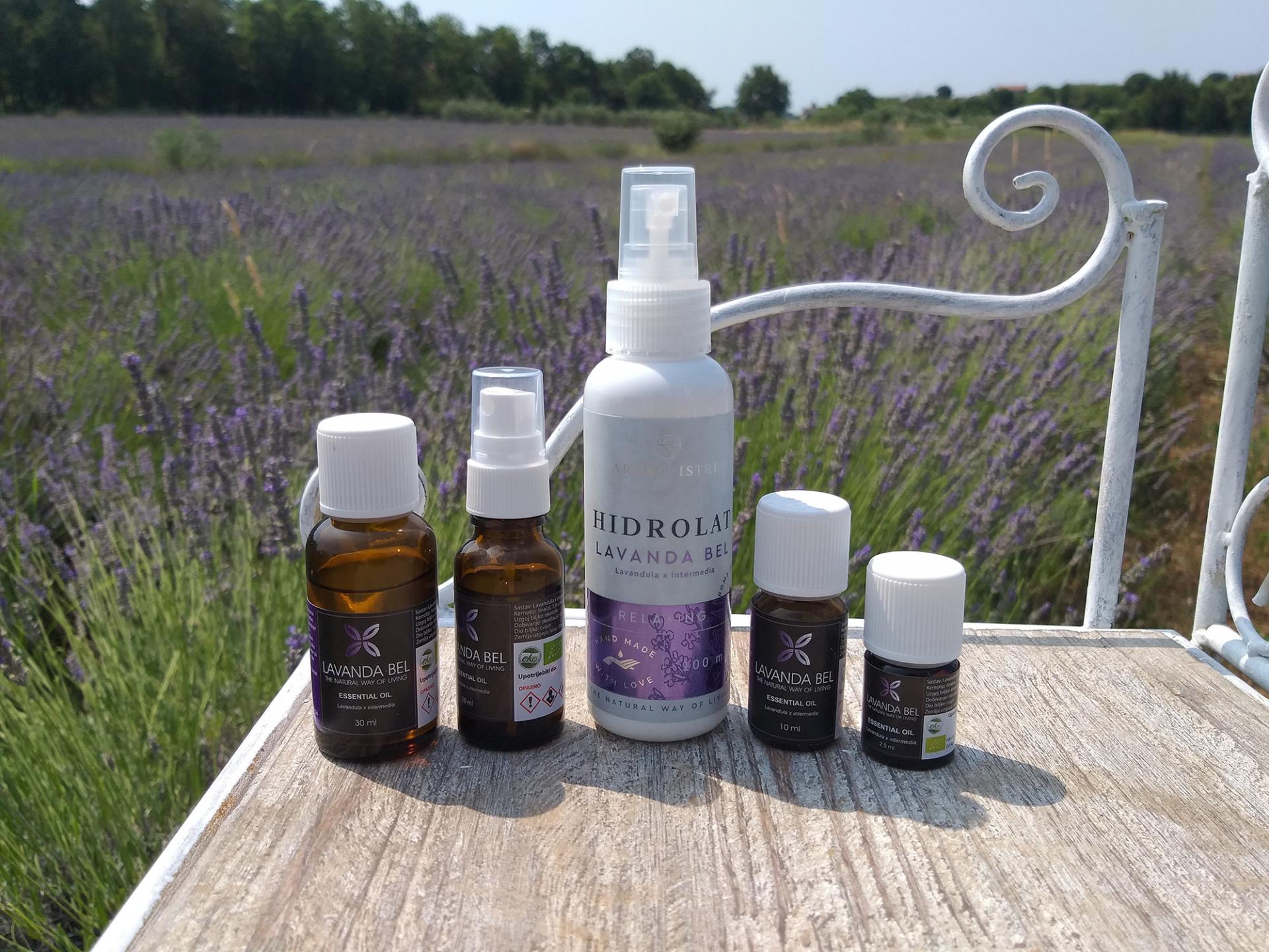 In our beauty products we use various essential oils from the Istrian region such as Lavender, Immortelle, Sage, Rosemary, Laurel, Mint, and olive oil from our own plantations and extracts of the best quality.