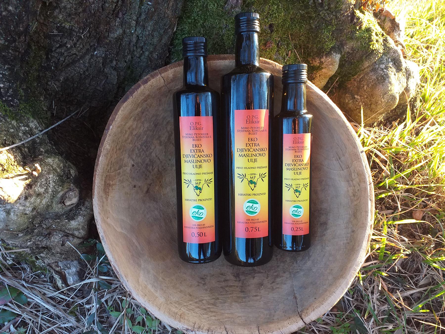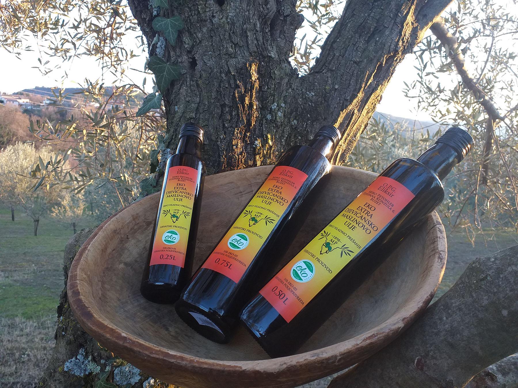 OPG Eliksir has been producing extra virgin olive oil for many years. Since 2011 we produce ECOLOGICAL extra virgin olive oil of high quality which is obtained from the olive fruit exclusively by mechanical means. The farm consists of old olives and new ones planted in 2009. There is a long tradition of olive oil production in our family. It used to be the main branch of our economy since the economy was based on the production of domestic herbs and liqueurs. However, olives have never been neglected.