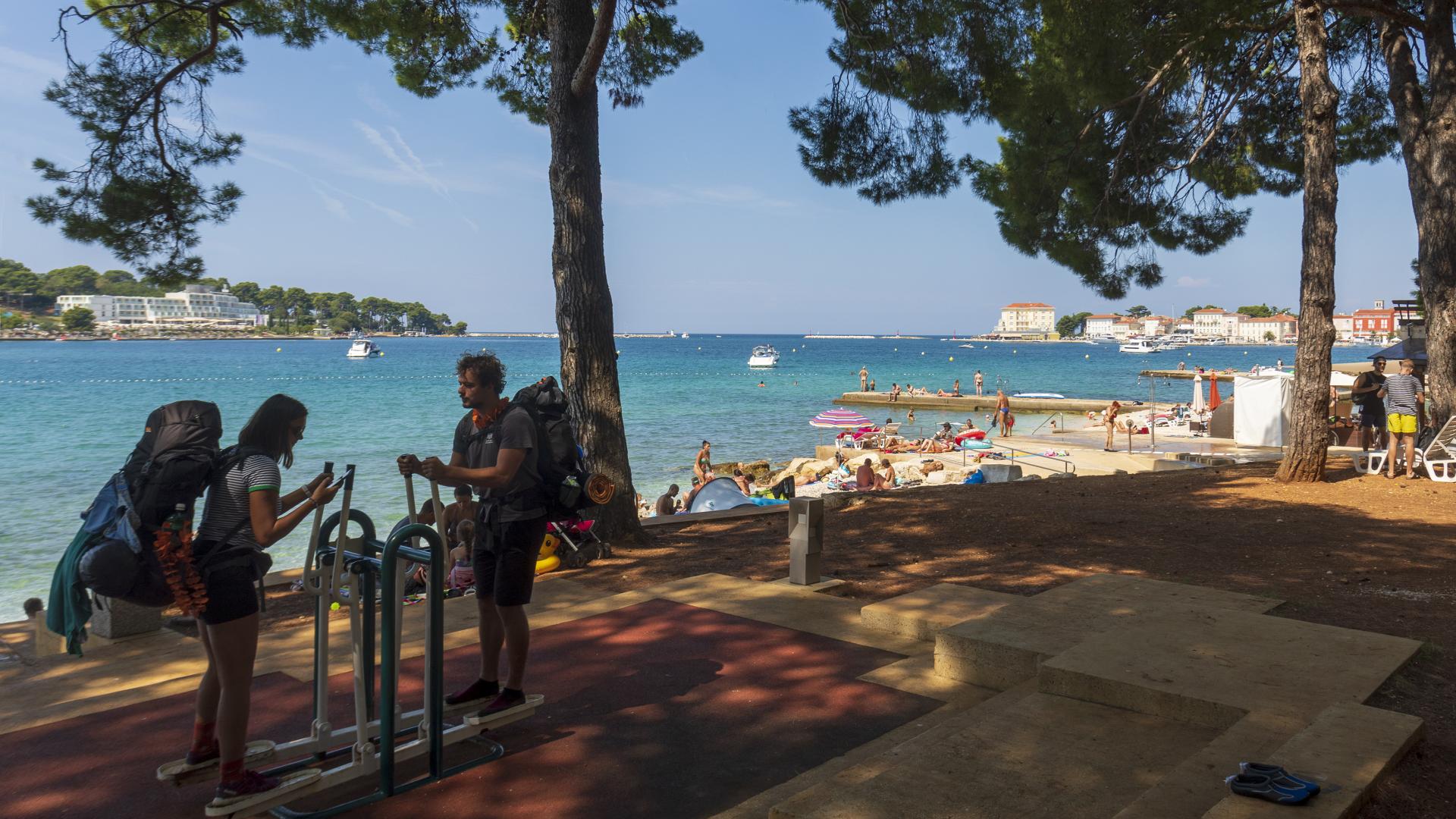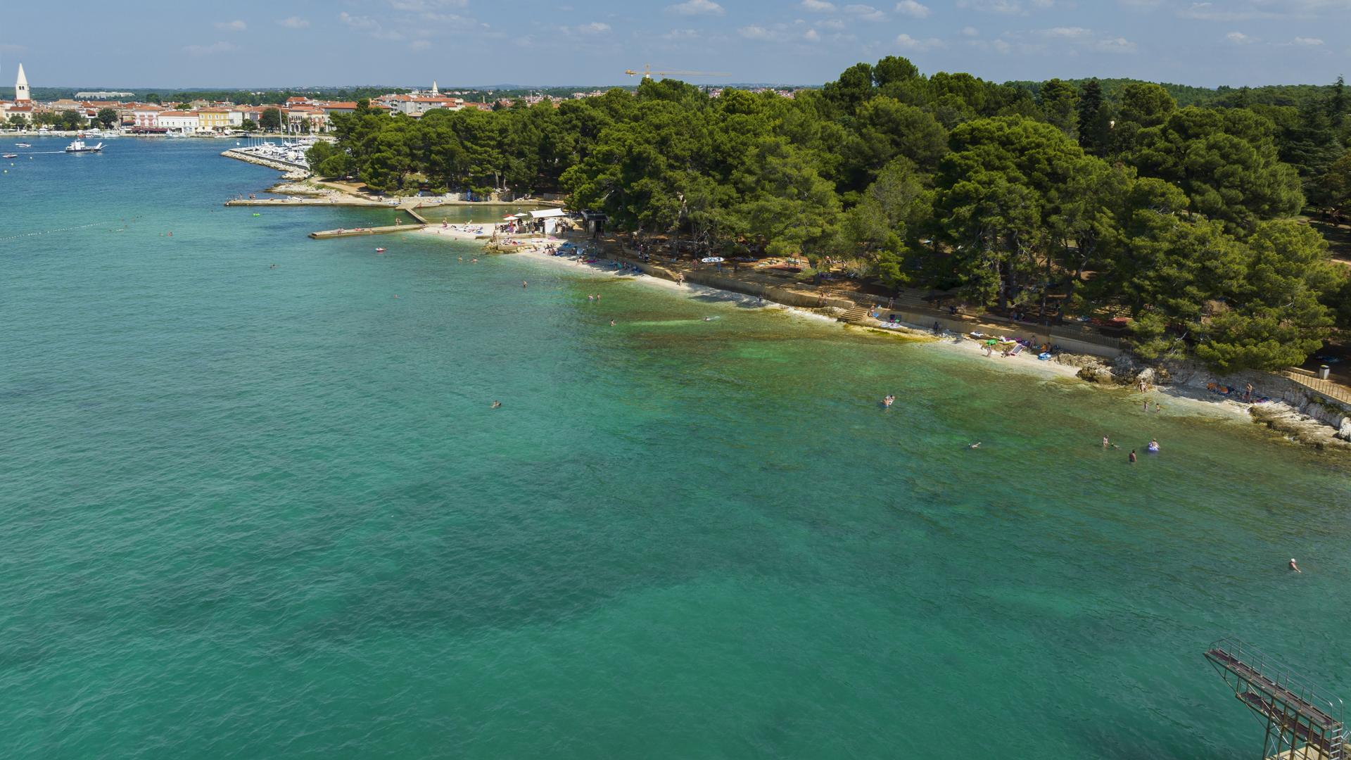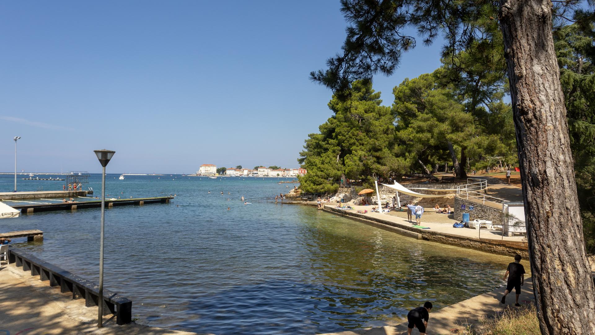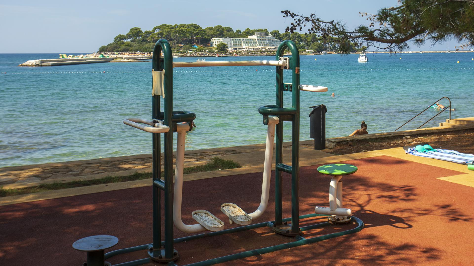 Godetevi oltre 150 metri di spiaggia messa a nuovo e passeggiate sul lungomare protetti dall'ombra dei pini. L'accesso alla spiaggia è adeguato alle persone con disabilità e mobilità ridotta. La spiaggia è ricoperta di ciottoli, dove si può godere il sole con vista sulla bellissima città di Parenzo. Desiderate essere più attivi, approfittate della palestra all'aria aperta all'ombra dei maestosi pini.