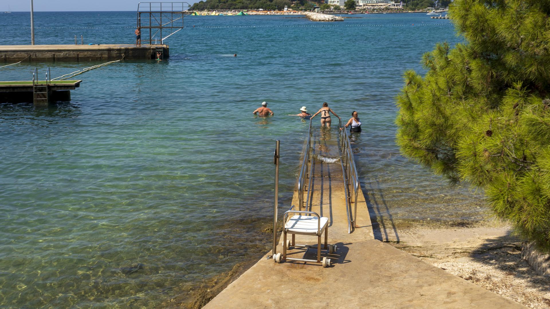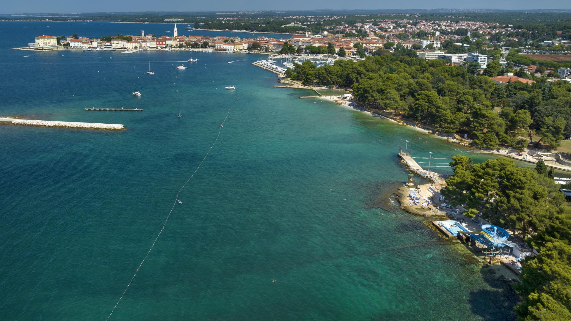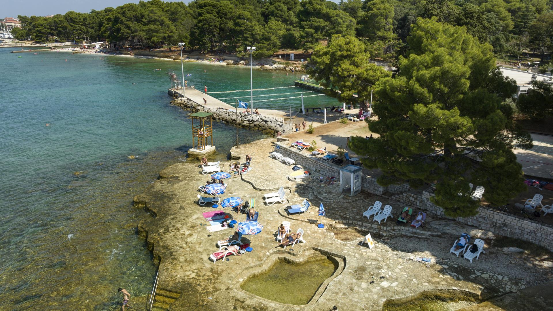 Godetevi oltre 150 metri di spiaggia messa a nuovo e passeggiate sul lungomare protetti dall'ombra dei pini. L'accesso alla spiaggia è adeguato alle persone con disabilità e mobilità ridotta. La spiaggia è ricoperta di ciottoli, dove si può godere il sole con vista sulla bellissima città di Parenzo. Desiderate essere più attivi, approfittate della palestra all'aria aperta all'ombra dei maestosi pini.