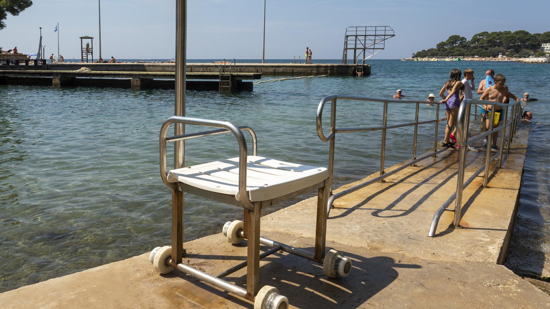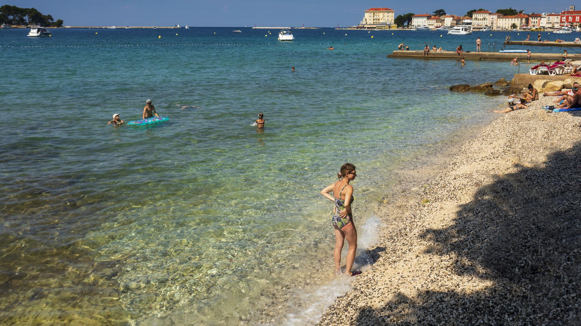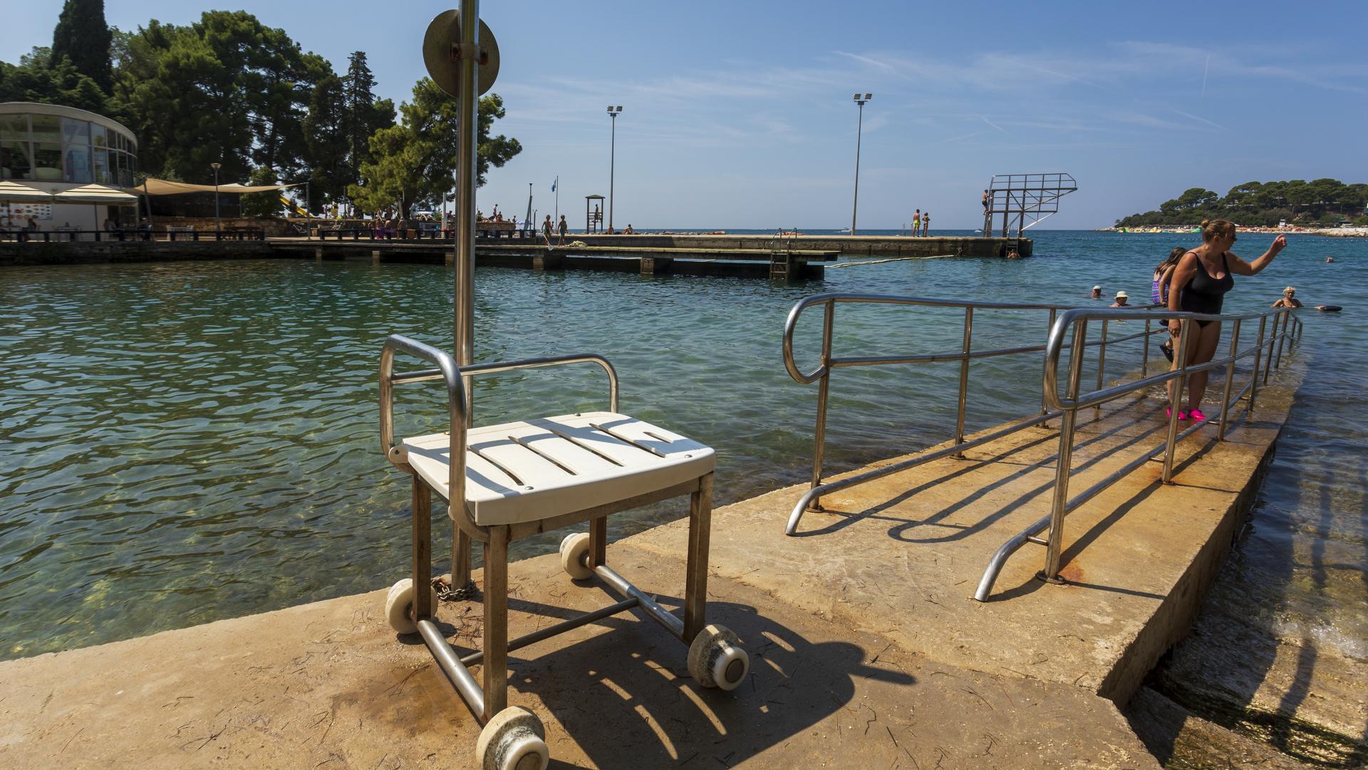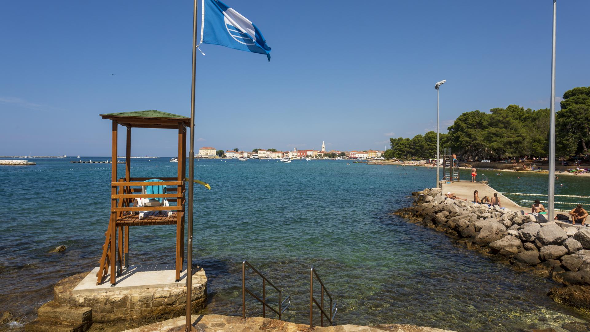 Godetevi oltre 150 metri di spiaggia messa a nuovo e passeggiate sul lungomare protetti dall'ombra dei pini. L'accesso alla spiaggia è adeguato alle persone con disabilità e mobilità ridotta. La spiaggia è ricoperta di ciottoli, dove si può godere il sole con vista sulla bellissima città di Parenzo. Desiderate essere più attivi, approfittate della palestra all'aria aperta all'ombra dei maestosi pini.