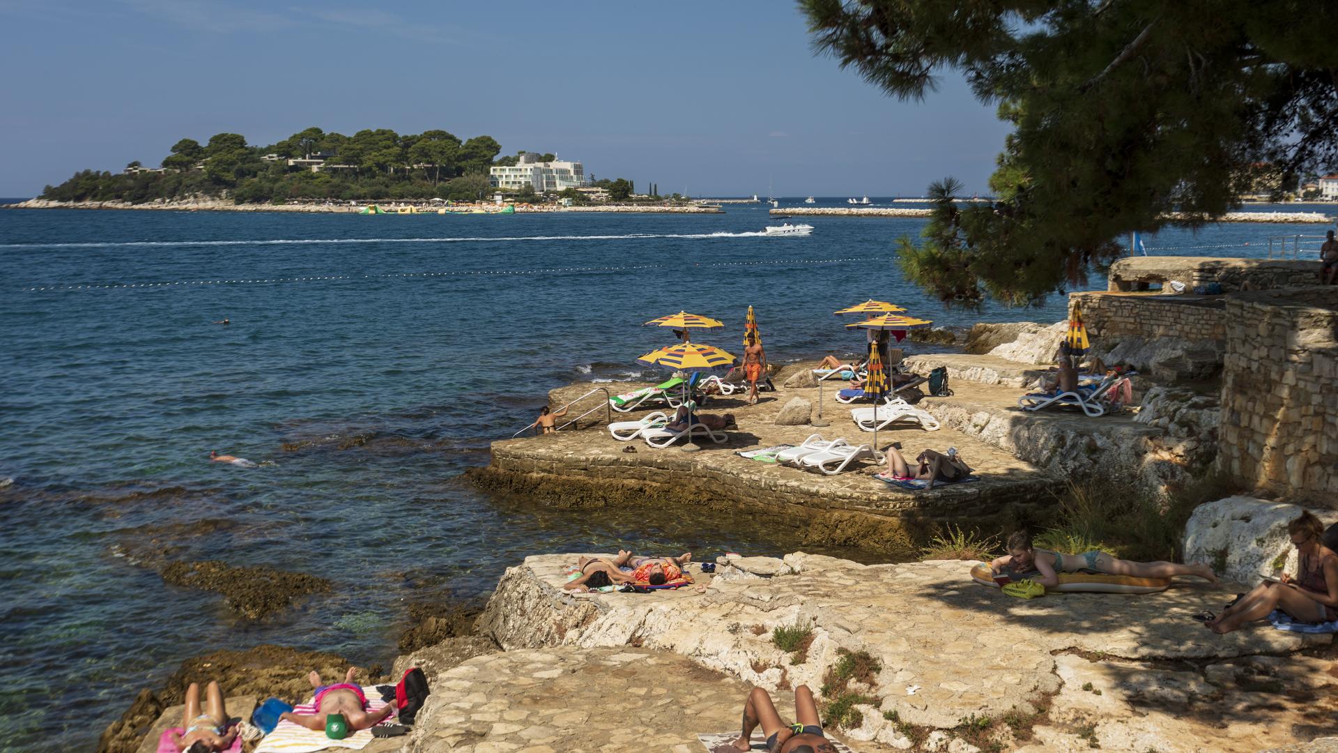 La spiaggia cittadina di Parenzo e inoltre attrezzata per facilitare l'accesso al mare alle persone disabili. Qui potete cimentarvi in svariati sport e gli eterni amanti dell'attivita all'aria aperta, potranno praticare il beach volley, oppure il tennis tavolo con gli amici nell'ombra della pineta circostante. Per divertirsi, i piu giovani hanno a disposizione l'acquascivolo, e per quelli che preferiscono semplicemente crogiolarsi al sole sulla spiaggia rocciosa, prevalentemente lastricata, c'e la possibilita di noleggiare ombrelloni, sdraio e lettini prendisole.